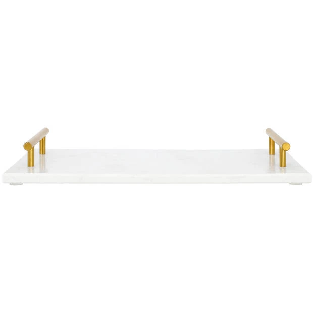 Dit Blokker City Oasis serveerplateau is gegarandeerd een echte blikvanger op jouw gedekte tafel! Het plateau heeft een luxe uitstraling door de combinatie van marmer met de goudkleurige handvaten. De afmetingen zijn 35×20 cm. Het artikel is niet geschikt voor in de magnetron, oven of vaatwasser.