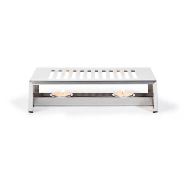 Eten warm houden in de keuken of op tafel? Gebruik dan deze Blokker rechaud! Dit rechaud van Blokker is voorzien van 2 theelichthouders, waar je waxinelichtjes of brandpasta in plaatst en aansteekt. Bovenop het rechaud zet je vervolgens je pannen, schalen of kommen met de inhoud die je warm wilt houden. Het rechaud van Blokker is gemaakt van RVS en is 25 x 14 cm groot.