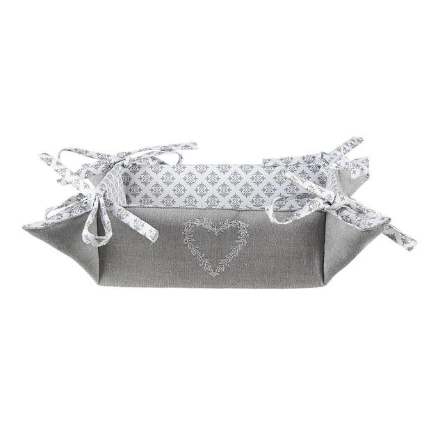 Dit vrolijke Stoffen Broodmandje van het merk Clayre & Eef met hart motief op een grijze achtergrond is mooi en praktisch tegelijk. De grijs/witte geruite print in een landelijke stijl met een romantische uitstraling geeft een gezellige en leuke sfeer aan je ontbijttafel. De dagelijkse broodjes, boterhammen, stokboord of croissantjes wordt een feest uit dit broodmandje. Het broodmandje is gemaakt van 100% katoen en is voorzien van 4 handige lintjes om het vast te maken. De afmeting van het stoffen broodmandje is 35*35*8 cm . Staat mooi bij iedere gelegenheid op tafel en past binnen elk interieur. Met home-textiel van Clayre & Eef wordt jouw thuis nog gezelliger!