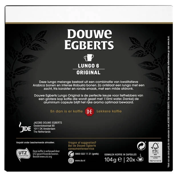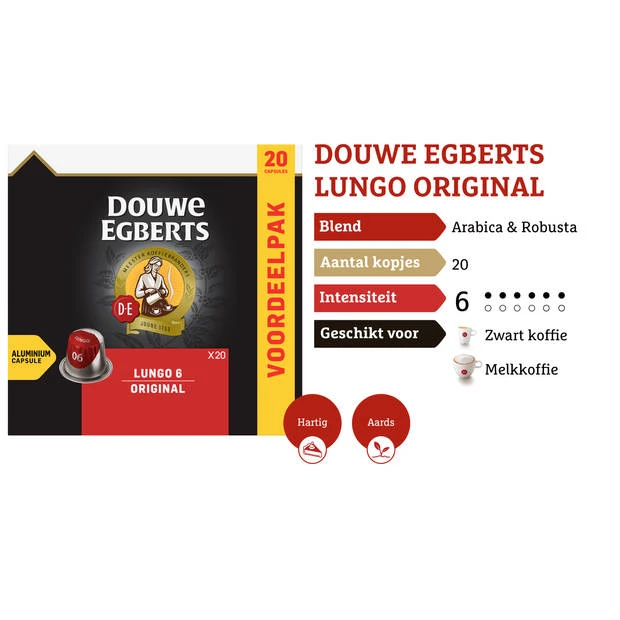Belangrijkste kenmerken Douwe Egberts Lungo Original koffiecups: