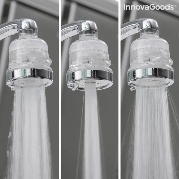 Een moderne eco-kraan met waterzuiveringsfilter dat de waterkwaliteit verbetert door onzuiverheden eruit te filteren. Ideaal voor de keukenkraan om veel gezonder water te geven om te drinken, eten te wassen en te koken. Het bespaart ook water, energie en zeep dankzij het microniserende effect van het water. Het heeft een knop om te kiezen tussen 3 soorten jets, waarmee de waterstroom kan worden geregeld. Het calciumsulfietfilter zuivert het water op doeltreffende wijze en de nuttige levensduur bedraagt ongeveer 8 tot 12 maanden, afhankelijk van het gebruik (een vervangingsfilter is inbegrepen). Hij is gemakkelijk te demonteren voor een gemakkelijke reiniging en om het filter te vervangen wanneer dat nodig is. Deze zuiveringskraan is zeer eenvoudig te gebruiken en te installeren, aan te passen aan de meeste kranen. Inclusief mannelijke-vrouwelijke adapter (standaard H24-M22-schroefdraad).