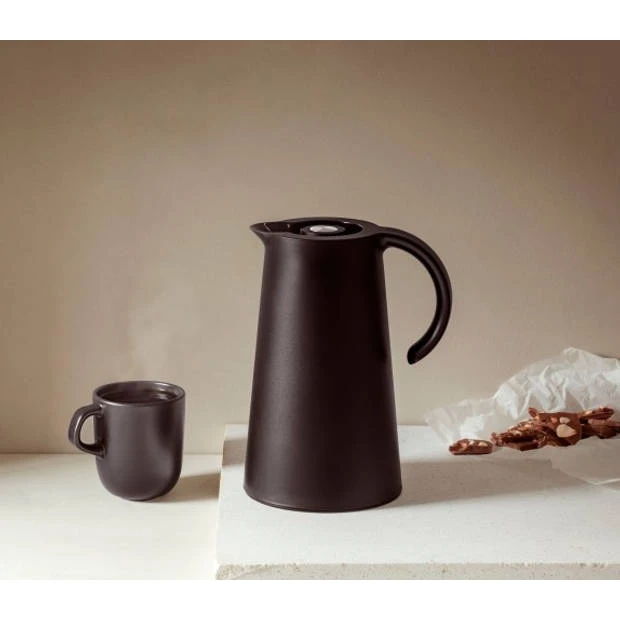 De Rise thermoskan van Eva Solo heeft een inhoud 1 Liter en valt op dankzij zijn eenvoud in zowel design als functionaliteit. Koffie of thee blijft urenlang warm dankzij het dubbelwandige, vacuüm geïsoleerde materiaal. Met de handige drukknop functie is de kan eenvoudig te gebruiken. Het openen of sluiten doe je simpelweg één keer te drukken. Het deksel is gemakkelijk los te draaien zodat de thermoskan gevuld of schoongemaakt kan worden. Het glazen inzetstuk aan de binnenkant is te vervangen via de onderzijde van de kan. De buitenkant is gemaakt van kunststof welke met een vochtige doek gemakkelijk schoongemaakt kan worden.