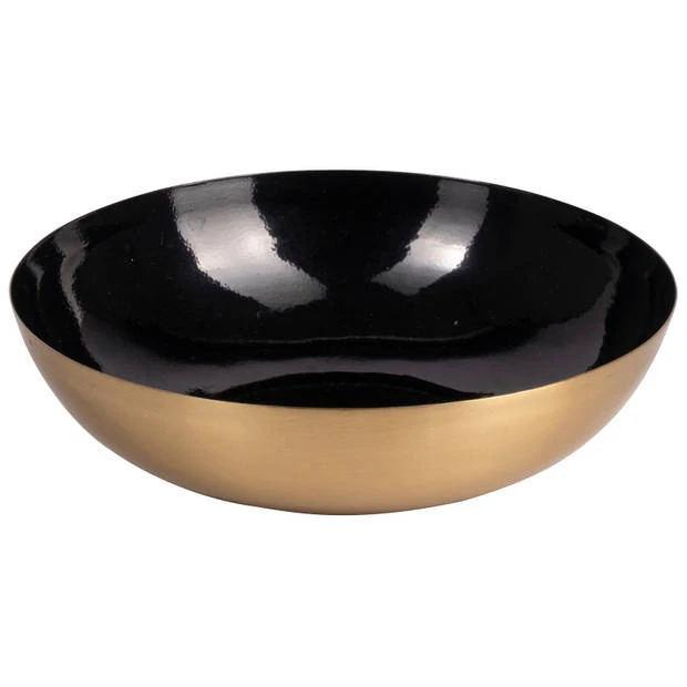 Wauw, deze mooie schaal is een echte blikvanger! De buitenkant is goud van kleur en contrasteert prachtig met de glanzende zwarte binnenkant. In deze ronde schaal serveer je stokbrood, decoreer je fruit of gebruik hem puur decoratief met bijvoorbeeld wat gedroogde bloemen erin. Een luxe toevoeging in je interieur!