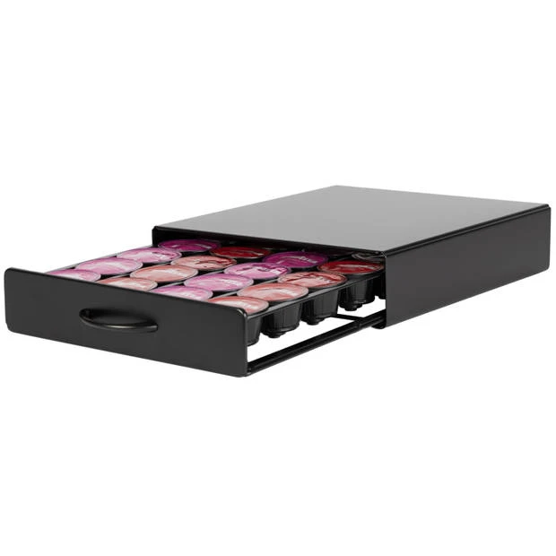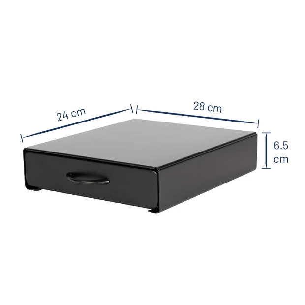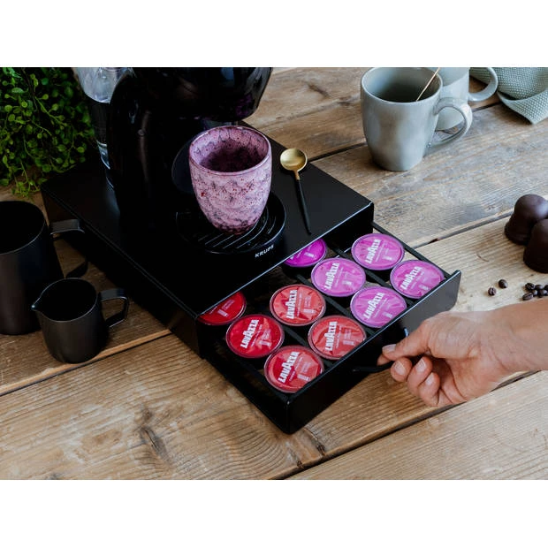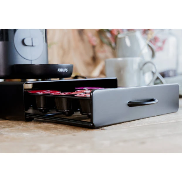 Los slingerende Dolce Gusto © cups zijn verleden tijd met deze Jay Hill Dolce Gusto Cuphouder Lade. De cuphouder is geschikt voor 20 Dolce Gusto cups en is zeer efficiënt. Plaats namelijk je favoriete Dolce Gusto apparaat op deze standaard (max. 10 kilo) en je hebt alles bij elkaar om een heerlijk bakje koffie te zetten. Deze Jay Hill Cuphouder verschuift niet, want hij is voorzien van antislip pootjes, heel handig!