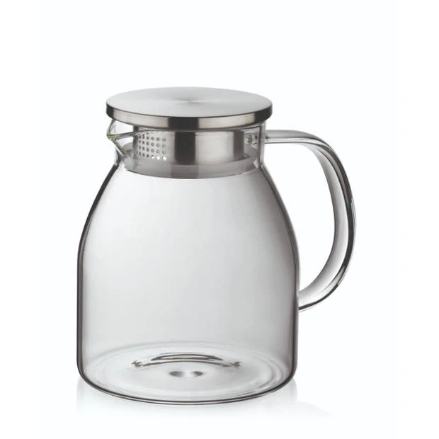 Heb je ook zo’n zin in een heerlijk kopje thee of drink je liever een lekker koud glas water? Je schenkt het allemaal in vanuit deze universele glazen kan uit de Luna-serie van Kela! De kan is gemaakt van hittebestendig borosilicaatglas, waardoor je met een gerust hart heet water in de kan kunt schenken! Dankzij het theefilter is de kan ideaal voor het drinken van (ijs)thee of het maken van verse limonade. Of je nu houdt van bosvruchtenthee, zwarte thee of een exotische thee, je stopt het gewoon in het filter en laat de thee langzaam in het water trekken. Liever iets anders drinken? Gebruik de kan dan voor een lekkere verfrissende dorstlesser als siroop of vruchtenwater. Om het schenken nog eens extra makkelijk te maken, heeft de kan een geavanceerd schenksysteem. Deze kan je op de volgende standen zetten: Gesloten, gedeeltelijk open en volledig open! Is de kan leeg? Je reinigt deze dan gewoon in de vaatwasser! Toch een kleinere kan nodig? Deze kan is ook verkrijgbaar met een inhoud van 1,2 liter.