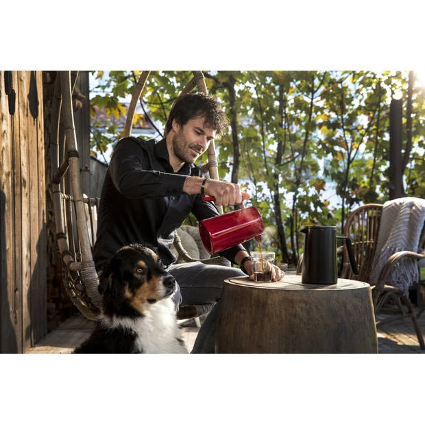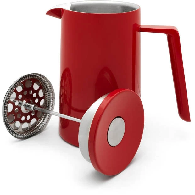 De koffiemaker heeft een inhoud van 1 liter, wat voldoende is voor 8 kopjes koffie. De koffiemaker is vervaardigd uit hoogwaardig roestvrij staal en is daardoor duurzaam en gemakkelijk schoon te maken. Gestyled in hoogwaardig rood.