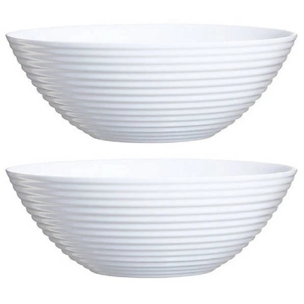 Fruit schalen van wit glas 27 cm, 2 stuks. Formaat: 27 x 27 x 10 cm. Materiaal: Glas. Geschikt voor in de vaatwasser. Glazen serveerschalen/kommen/fruitschalen keuken accessoires/benodigdheden.
