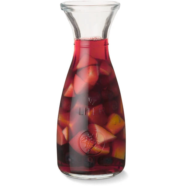 Met deze glazen karaf kan je makkelijk water of sap serveren. Als je het sap tussentijds koud wil houden kan dat heel gemakkelijk, de karaf past namelijk in de koelkastdeur. De karaf heeft een inhoud van 0,5 L en na gebruik kan hij gewoon in de vaatwasser.