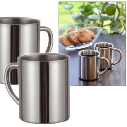 Merkloos Set Van 2x Stuks RVS Warmhoudbeker/isoleerbeker Zwart Staal 380 Ml – Thermosbeker