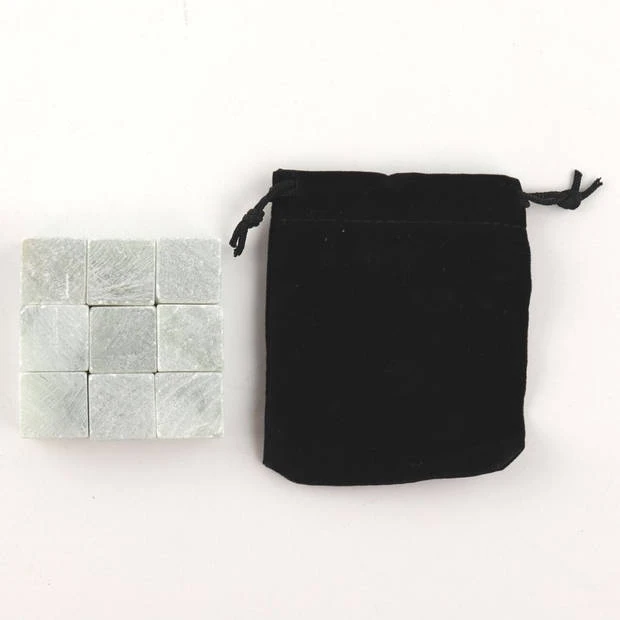Chique whiskey stenen gemaakt van natuursteen van het merk Orange85. De set bestaat uit 9 stenen inclusief opbergzakje. De stenen geven je likeur een koude ‘on the rocks’ twist, zonder dat deze waterig wordt door smeltend ijs. Zo wordt de smaak optimaal behouden. De stenen hebben een afmeting van 2 x 2 x 2 cm. Stenen blijven tevens langer koud dan ijsklontjes. Ze zijn geschikt voor in de vaatwasser