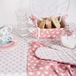 Clayre & Eef – Broodmand – Katoen – 20 X 20 X 8 Cm – Landelijk – Vogels – Birds – Oud Roze