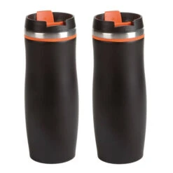 Merkloos Set Van 2x Stuks RVS Warmhoudbeker/isoleerbeker Zwart Staal 380 Ml – Thermosbeker