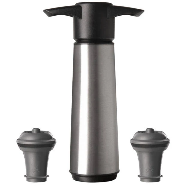 Met de Wine Saver vacuümpomp en stoppers kunt u ervoor zorgen dat uw open fles wijn langer goed blijft. Bewaar de wijn onder een vacuüm en geniet er tot tien dagen van! Haal de lucht uit uw geopende fles wijn met onze vacuümpomp en hersluit deze met een herbruikbare rubberen wijnflesstop. Plaats gewoon de universele wijnstopper in de bottleneck en pomp totdat u het gepatenteerde “Click” -geluid hoort. Dit geeft aan dat u het optimale vacuümniveau en een luchtdichte afdichting hebt bereikt. Je fles is nu klaar om te worden bewaard in de koelkast of op het aanrecht.