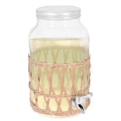 Excellent Houseware Glazen Limonadetap/drankdispenser – 5,5 Liter – Rotan – Drankdispensers